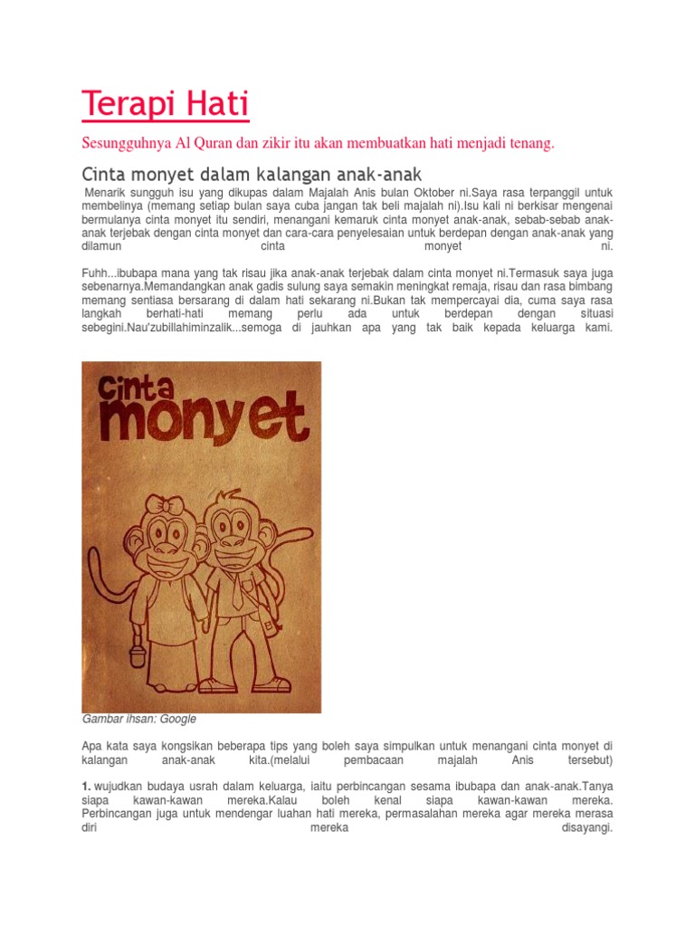 Menghadapi Cinta Monyet Pada Usia Remaja Konseling Psikologi from konselingpsikologi.com Why so serious ?cinta monyet jangan dikejar. Ciri yang paling mudah terlihat adalah cinta monyet terjadi pada masa remaja atau smp. Belum lagi betapa menyenangkannya merasakan berbagai sensasi dan euforia dalam fase cinta monyet. Kenapa monyet menjadi simbol cinta? Permainan cinta ku pun terus menerus seperti itu, aku tidak pernah berfikir, akan ada karma dan balasan yang sama atas apa yang sudah aku perbuat. Cinta yang sempurna adalah cinta yang memenuhi dari ketiga aspek tersebut. Mengapa tidak ada istilah cinta kambing atau pun cinta kuda? Secara harfiah cinta monyet itu adalah ketika monyet jantan mencintai monyet betina.